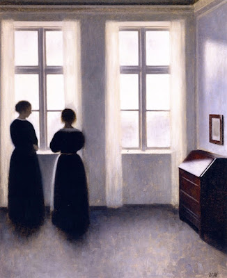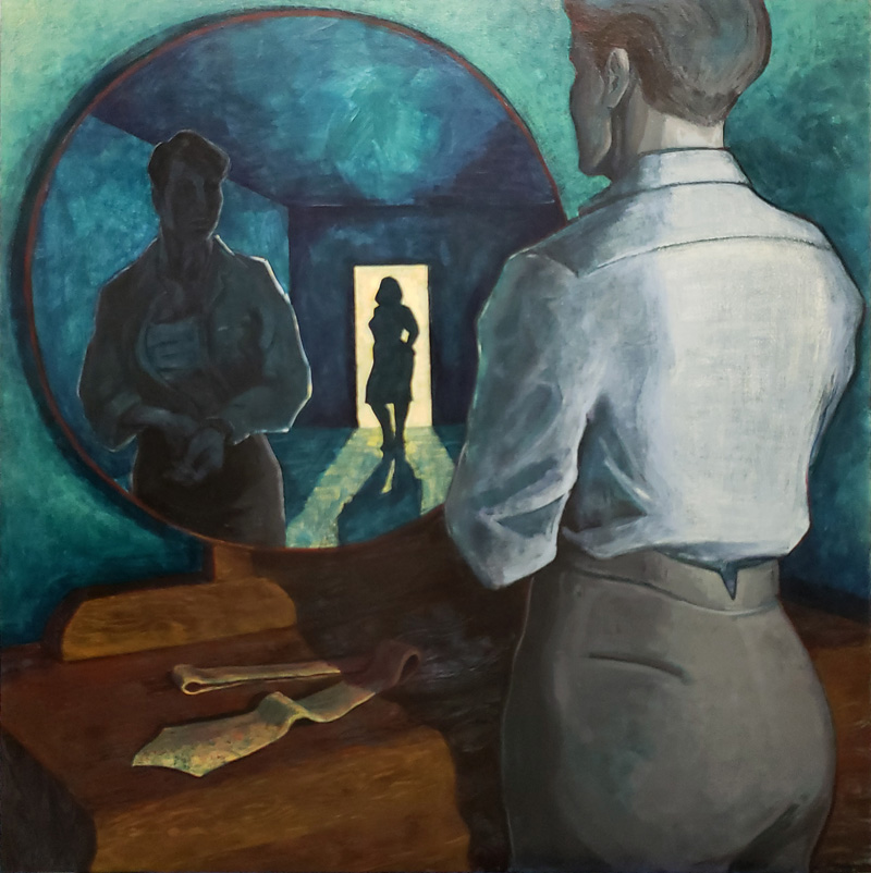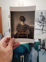 There is something so very intriguing and mysterious about viewing someone’s back. A lot of images in my art depict people’s backs. First of all, they are interesting visually, because they are the least body-like body-part. They are like a wall, or a blank page. There is an inherent tension created by being in someone’s presence, yet not being able to discern their expression, like they have closed eyes, or are wearing a mask. I recently found a postcard I have had for years. Before the internet, anytime I went to a museum, I would buy a slew of postcards to take home with me, because collecting images didn’t just happen with the click of a button.This postcard says it was produced by The Louvre. This means I bought it around 1998. I’ve had it in my possession ever since. I was drawn to its elegance, simplicity and mystery.